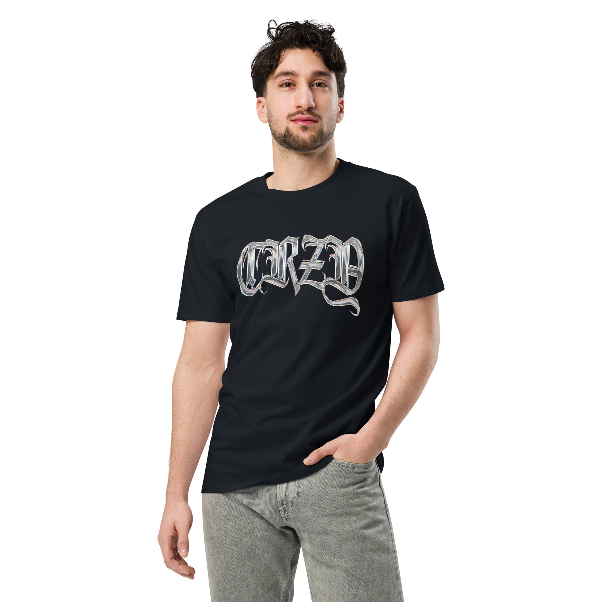 CRZY in metallic chrome lettering on a T-shirt. Wrap yourself in comfort with this premium tee. It’s made of 100% combed cotton and has a soft, luxurious feel. The t-shirt’s regular fit and crew neck boast a timeless look. The fabric is pre-shrunk to maintain its size and shape wash after wash. Style it up or down to suit any occasion.